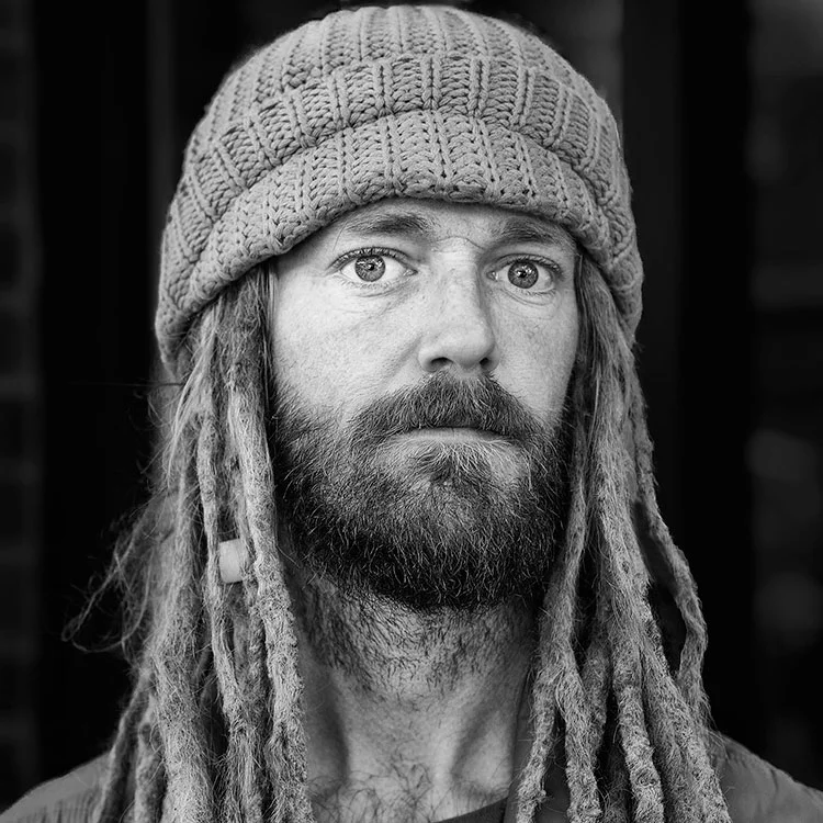 I saw Timmy from a distance at my favorite Farmer's Market. Gee, I wonder what caught my eye... The sun was high in the sky, and there was no way to photograph him where he was. When I introduced myself, and the project, he immediately “got it” and was cooperative. He gladly moved ~20 yards, into shade. The reason he “got it” is that he is an artist, and understands projects and anxiety.
