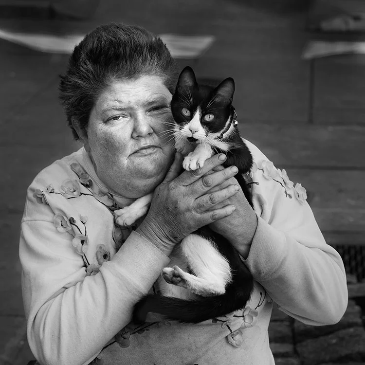 I was walking past her when she called out, “Hey Mister, take a picture of my cat.” So I walked over and said that I'd get a picture of both of them. The cat is Sassy and is five yeas old. Rosie is from Thomaston, GA. I told her that my wife had friends from there, and Rosie said that she recognized the names. I am not totally convinced.