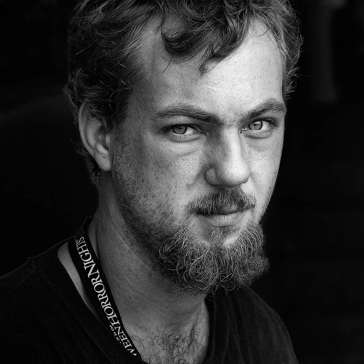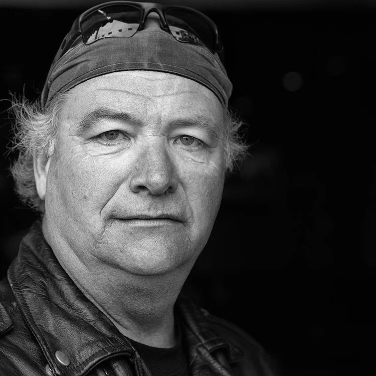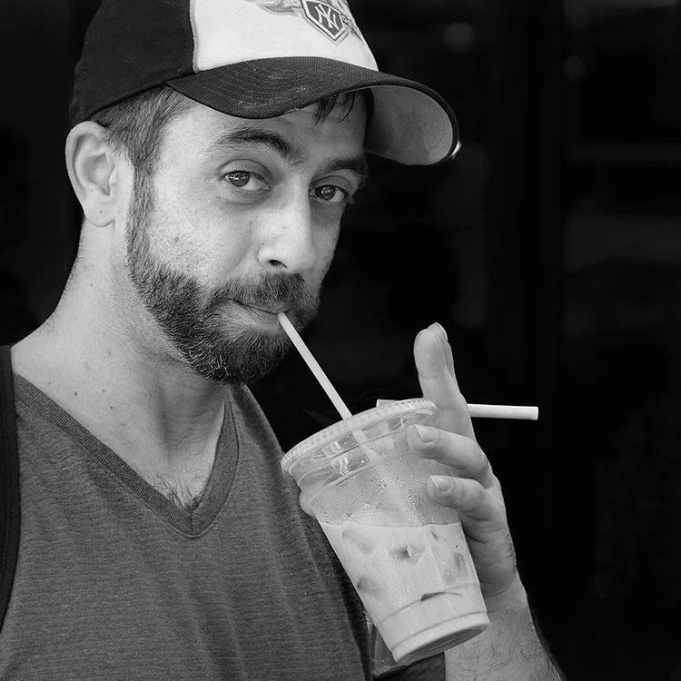 Next to me was a bank. The entrance was in shade, a decent place for a portrait. When the light turned green, I pulled into the bank parking lot, got out, met Stewie, and discretely made a small contribution to his well being. He said that the sign was legal, as long as cops didn't see him accept money from someone in a car.