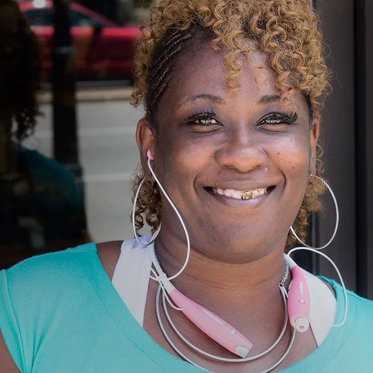 While visiting Macon GA, I walked around the downtown area with a camera. Surprise, surprise! Magcine stepped out of the small woman's boutique where she works and took a break. As I approached, she made eye contact and smiled, all the encouragement that I needed.